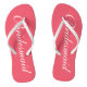 Élégante tongs mariages coralliens roses pour serveuses d'honneur. Personnalisable couleur arrière - plan et bracelet personnalisable avec initiales de nom ou monogramme facultatif. Moderne ses sandales et ses sandales avec typographie stylisée de calligraphie. Soirée pour le thème de la plage mariage, mariage, douche nuptiale, fiançailles, anniversaire, barbecue, bachelorette, bachelor, voyage de week-end pour filles etc. Faites vos propres flipflops classe pour mariée et mariée, demoiselles d'honneur, fille de fleurs, mère de la mariée, groomsmen, épouse d'équipe, équipe de mariée, entourage, invités etc. Fun souvenir chaussons pour le mariage de destination d'été en juillet et août. Aussi agréable pour les couples mariés en lune de miel / nouveaux mariés en vacances.