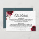 Cette élégante carte d'insertion de détails de mariage tropicale est parfaite pour un mariage rustique. Cette aquarelle colorée boho unique présente des fleurs bleues, indigo, roses, navales et rouges assorties dans un charmant bouquet aux détails artistiques baisés.
