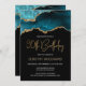 Cette élégante invitation de 90ème anniversaire présente une aquarelle d'une géode d'agate dans les tons turquoises avec des reflets d'or. Les mots "90th Birthday" apparaissent dans la parties scintillant en faux or dans la police décorative moderne d'écriture manuscrite. Customisez-le avec le nom de l'honoré dans le texte couleur or et les détails en blanc. La même image d'agate turquoise apparaît à l'envers.