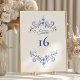 Elégant Vintage Romance Blue Mariage Numéro de tab
