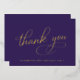 Elégant violet 60ème anniversaire carte de remerciements avec "Merci" dans un script de calligraphie chic rendu dans votre choix d'or véritable, argent ou feuille d'or rose. Au verso, personnalisez votre message de remerciement et ajoutez votre nom dans un script signature