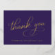 Elégant carte de remerciements violet de 70ème anniversaire avec "Merci" dans un script de calligraphie chic rendu dans votre choix d'or véritable, argent ou feuille d'or rose. Au verso, personnalisez votre message de remerciement et ajoutez votre nom dans un script signature