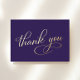 Montrez votre gratitude dans le style avec cette élégante carte de remerciements violette, parfait pour vos invités de 90ème anniversaire. L'avant présente le "Merci" dans un script de calligraphie chic, rendu dans votre choix d'or, d'argent ou d'or rose authentique. Au verso, vous pouvez ajouter un message personnel et votre nom dans une jolie police manuscrite.