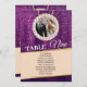 Elegant violet brillant Photo carte de siège Prenez-vous un tableau de siège unique, moderne et élégant qui est livré avec parties scintillant, étincelles, et un cadre doré/diamant où vous pouvez ajouter l'image du couple. le cadre est si élégant et il complique la photo de vous en tant que couple à l'intérieur. Le design est minimaliste mais élégant et chic avec un accent doré et une touche de script de calligraphie sur le numéro de la table.