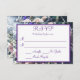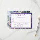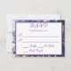 Elégant Mariage Floral violet Réponse RSVP conçu avec un beau bouquet de fleurs dans les tons doux de violet avec bordure violette et texte. Le texte avant comprend : RSVP, The Reply By Date, et espace pour que les invités écrivent leurs noms et leur réponse. L'inverse est un arrière - plan floral violet correspondant. Pour personnaliser, insérez simplement votre réponse par date dans notre modèle facile, en remplaçant l'exemple de texte. N'oubliez pas de consulter la collection de Mariages floraux violets Elégant pour les articles de papeterie et accessoires correspondants.