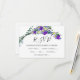 Un design élégant et vintage avec eucalyptus, lavande et violet violet peint en aquarelle romantique. CARTES RSVP. Pour commencer à modifier les noms et les détails de l'événement, cliquez sur "Personnaliser ce modèle" et modifiez le libellé dans les zones modèles. Pour accéder aux outils d'édition les plus avancés, faites défiler la page vers le bas vers "Cliquez pour customiser plus loin". Une fois que vous êtes dans l'outil de design de Zazzle, vous pouvez modifier les polices, le placement, la couleur, le dimensionnement, et plus encore! Partie d'une suite coordonnée. Voir la collection complète ici : https://www.zazzle.com/collections/lavender_eucalyptus_and_purple_violet_collection-119664202013606728