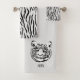 Elégant beau visage animal tigre et monogramme sur le kit de serviettes de bain gris clair.
