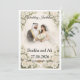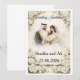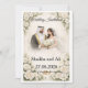 A beautifully designed wedding invitation featuring a charming cartoon-style bride and groom, surrounded by delicate white roses and soft greenery. The illustration has a romantic and elegant feel, perfect for modern wedding invitations.