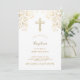 Un design élégant en blanc et or pour le baptême de votre enfant. Avec des tourbillons et des fleurs en or et une croix chrétienne en or au centre. Les modèles sont faciles à utiliser. Ajoutez le nom de votre enfant et les détails de la cérémonie. S'il y aura un dîner, ou des rafraîchissements après, ajoutez cette information aussi. Utilisez l'exemple de texte comme guide. Si vous avez besoin d'aide, contactez le concepteur et elle vous aidera.
