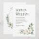 Celebrate your special day with this elegant wedding invitation featuring a beautiful bouquet of white roses and lush greenery. The design combines soft watercolor botanicals with a clean, modern serif typography for a look that is both timeless and sophisticated.