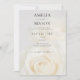 Elegant White Rose Script Wedding Invitation. Celebrate your love with this elegant white rose wedding invitation. Featuring a delicate script font and a stunning close-up of a soft, creamy white rose, this design embodies timeless romance and sophistication. The gentle fading background adds an ethereal touch, perfect for setting a graceful elegant tone for your special day. Announce your joyous union with a design that speaks of pure beauty and heartfelt commitment, making your wedding stationery as unforgettable as the occasion itself.