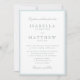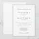 A delicate and timeless wedding invitation featuring a soft white background accented by a subtle blue frame that adds light structure and refined elegance. The classic typography and airy layout create a harmonious, graceful presentation perfect for stylish celebrations.