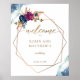 Bienvenue à vos invités avec cette belle enseigne de bienvenue avec un coin céleste exquis en cascade taches d'aquarelle avec des étoiles dainty et cadre géométrique élégant avec des détails floraux montrant message d'accueil avec les noms de couple. Aquarelle céleste et florale en bleu, bleu marine, turquoise, violet, magenta fuchsia et doré. Dimensions moyennes et inférieures aux valeurs recommandées. Facile à encadrer ou alternativement colle/agrafage à robuste MDF bon marché. Une partie de notre collection "Mystic Garden Celestial" avec une variété de produits de coordination disponibles. Dimensions du panneau dans la photo de démonstration avec stand : 18" x 24"