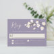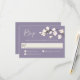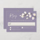 Avec un charme et une élégance modernes, cette carte de réponse mariage offre un jeu de couleurs neutres avec des fleurs blanches en couleur douce blanc et blanc cassé avec une verdure sur un arrière - plan de lavande violet populaire. L'avant de la conception a une branche de petites fleurs blanches et l'arrière comprend un beau bouquet de roses blanches et d'hydrangée avec d'autres fleurs mixtes. Ce design est un très bon choix pour les mariages du printemps et de l'été. Personnalisez le modèle de texte avec la date de réponse requise.