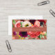 Elégante aquarelle bohème fleurs, plumes et feuillage dans les tons chic violet, bordeaux, rose, pêche et vert, carte de visite. La couleur Arrière - plan, affichée en orange rouille, peut être customisée.