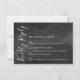 Cette carte RSVP simple et élégante présente un design d'aquarelle minimaliste avec des polices blanches. Toutes les couleurs, y compris l'aquarelle gris foncé ou noir, peuvent être changées, car l'aquarelle est posée sur l'arrière - plan coloré. Le côté avant présente "Kindly Reply" en élégant script sur le côté, avec espace pour les réponses de vos invités. Sur le dos est un simple monogramme pour les initiales du couple. Cette carte de réponse moderne et sobre fonctionne parfaitement avec n'importe quel thème mariage et chaque saison de l'année. Vous pouvez également modifier les couleurs de police en fonction de vos préférences. L'élégance chic et minimaliste de cette carte RSVP vous assure de compléter une variété de thèmes mariages, en ajoutant une touche de classe à votre journée spéciale. Elégante aquarelle simple et élégante Carte RSVP Black Wedding