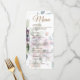 Présentant notre carte de menu mariage minimaliste et tendance, avec de jolies fleurs en feuille violet clair et vert et plus, avec un élégant arrière - plan, créant un look propre et élégant pour votre journée spéciale.