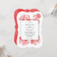Ce design présente d'élégantes fleurs d'hibiscus tropicaux rouges. Le texte noir classieux contraste avec l'illustration de l'aquarelle florale rouge. La bordure noire de ligne fine entourant le libellé crée un style sophistiqué, tendance et chic. La configuration simple de la typographie lui donne un style distinct. Idéal pour un mariage tropical de plage de destination. Conception élégante d'invitation de mariage avec des éléments modernes. Des articles de papeterie mariage correspondants et d'autres formats d'invitation de mariage sont également disponibles.