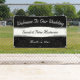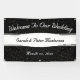 Élégante Bannière Mariage or Confetti moderne conçue sur un arrière - plan noir et blanc aux accents confettis dorés. Le texte comprend : Bienvenue à notre Mariage, les noms mariés de la mariée et de la mariée et la date du Mariage. Pour personnaliser, insérez simplement vos détails dans notre modèle facile, en remplaçant l'exemple de texte.