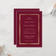 Elégante invitation de mariage pour une fête de mariage bordeaux et or. Éléments correspondants disponibles.