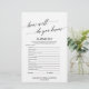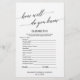 Cette élégante calligraphie "comment bien connaissez-vous la mariée" jeu est parfait pour une simple douche nuptiale. Le devant de la carte de jeu comporte "comment connaissez-vous bien la mariée", et le dos de la carte contient "ce qui est dans votre sac à main". Le design neutre présente une carte de jeu minimaliste décorée avec une typographie romantique et fantaisiste. Personnalisez l'avant de la carte avec le nom de la date de la mariée et de la douche nuptiale.
