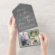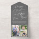 Cet élégant design carte photo de vacances dispose d'un arrière - plan gris classique avec un magnifique script de calligraphie et trois photos. L'intérieur de la carte contient du texte et trois photos, une verticale plus grande et deux photos carrés plus petites. À l'extérieur de la carte se trouve votre adresse de retour et votre accueil personnalisé. Lorsque la photo est déchirée comme souvenir, le destinataire aura également votre salutation au dos de la partie photo. De plus, comme vous pouvez le voir il ya besoin de commander des enveloppes! !