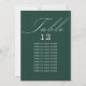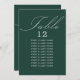 Carte de séjour Emerald Green mariage avec calligraphie élégante et typographie modifiable. Un design minimaliste simple et moderne qui s'adapte à vos couleurs mariages. Le tableau est écrit en écriture manuscrite et le modèle est prêt à modifier le numéro de table et votre liste de sièges d'invités.