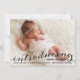 Cette belle photo de bébé faire-part dispose d'un magnifique script de calligraphie superposant une photo de fond de sang de votre nouveau petit.