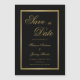 Annoncez votre mariage avec style grâce à cette carte magnétique personnalisée élégante 'save the date' avec écriture or faux avec votre date de mariage et autres détails à personnaliser bordés d'un cadre or faux brillant sur un fond noir simple. Conçu par Susan Coffey.