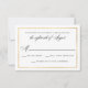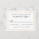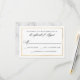 Une belle carte de mariage RSVP élégante avec des détails de script de calligraphie, une bordure mince en or et une texture en marbre sur le dos.