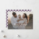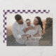 Photo plaid en vichy violet personnalisé Joyeuse carte de Noël avec une couverture de neige et une belle police de script festif. Personnalisez facilement cette carte de vacances avec votre photo et votre nom de famille.