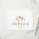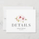 Une carte d'enceinte de détails magnifiquement conçue avec des fleurs délicates d'aquarelle dans des tons pastel doux. La typographie élégante et la disposition minimaliste créent une atmosphère sophistiquée et romantique, idéale pour les mariages, les anniversaires et les fêtes spéciales. Entièrement personnalisable avec les noms, la date et les détails personnels pour fournir aux invités des informations importantes sur l'événement.