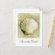 Jolie carte de faire-part peinte à la main en forme de coquille Saint-Jacques pour annoncer votre mariage à la plage, votre mariage d'été ou de destination, votre anniversaire ou toute autre occasion spéciale. Personnalisez-la pour votre grand jour.