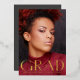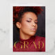 Élégant moderne photo graduation faire-part cartes en feuille d'or (votre choix d'or argent ou feuille rose). Les caractéristiques de conception comprennent des éléments de texte de style haut de gamme et élégant avec une typographie minimaliste moderne. La photo du diplômé couvre l'intégralité du devant de la carte avec du texte en feuille d'or sur le dessus. Le dos de la carte offre des espaces de texte personnalisés pour des informations sur votre diplôme ou peut être effacé si vous souhaitez écrire un message à la main. Parfait pour les étudiants de deuxième cycle du secondaire, du collège et de l'université.
