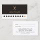 Carte de fidélité simple et moderne pour salon de beauté. Design élégant avec arrière - plan gris foncé et blanc et un faux motif ciseau doré. Outil marketing parfait pour récompenser vos meilleurs clients.