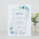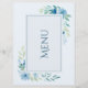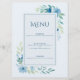 Elégante carte de menu Mariage Floral Bleu