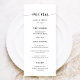 Elégante carte de menu mariage noir et blanc