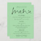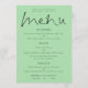 Élégant Script Celadon Green Mariage Menu Card, avec un script stylé pour le Menu d'en-tête. Personnalisez facilement le reste du texte à vos propres détails qui inclut des alternatives pour vos options végétaliennes ou végétariennes. Vous pouvez également modifier les styles et les couleurs de texte ainsi que les couleurs arrière - plans via l'option customiser plus si vous le souhaitez.
