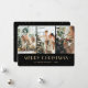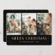 Photo noire moderne Joyeuse carte de Noël avec un collage de trois photos et de petites étoiles. Personnalisez facilement cette carte photo de Noël avec vos photos et texte.