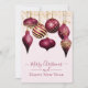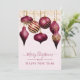 Cette carte de vacances élégante présente de beaux ornements de Noël en bordeaux et or avec des lampes à cordes d'or sur un arrière - plan rose doux. Texte "Joyeux Noël et Joyeux Nouvel An" sur le devant, et salutation personnelle et les noms de famille sur le verso peuvent être facilement changés en cliquant sur "Personnaliser". Parfait pour la saison des fêtes.