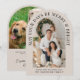 Carte de Noël taupe moderne en forme d'arc avec votre photo dans une arche entourée de "Puisse tes Jours être Joyeux & Lumineux" dans élégante typographie serif, et votre nom et votre salutation saisonnière en simple typographie. Au verso, ajoutez une deuxième photo, un message personnalisé et vos noms dans un script signature.