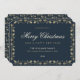 Bleu et or Joyeuse carte de Noël avec holly or sur un arrière - plan bleu.