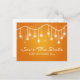 Élégant modèle de carte de "Pré-réservation" de mariage avec des Étoiles Brillantes Orange romantiques, et des noms et date personnalisés. Impressionnez votre famille et vos amis avec ce design moderne et élégant. Entièrement personnalisable !