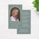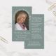 Elégante carte de prière pour un souvenir et un service funéraire d'un être cher à la sauge noire. Le devant présente leur photo dans un cadre voûté, "Forever In Our Hearts" et "In Loving Memory Of" dans la typographie et le script blanc classique, ainsi que leur nom et leur date de naissance et de mort. L'envers comporte un long passage inspirant ("Ne remplissez pas vos coeurs de douleur") et un message plus court, ou customisez avec vos propres messages ou versets bibliques.