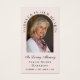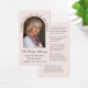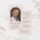 Elégante carte de prière de garde rose pâle pour le service commémoratif et funéraire d'un être cher. Le devant présente leur photo dans un cadre en arc, "Forever In Our Hearts" et "In Loving Memory Of" dans un mélange de typographie et de script classique et de leur nom, de leur date de naissance et de leur date de mort. L'envers comporte un long passage inspirant ("Ne remplissez pas vos coeurs de douleur") et un message plus court, ou customisez avec vos propres messages ou versets bibliques.