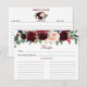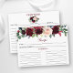 Aquarelle Burgundy Marsala Blue Floral Recette pour Fête des mariées ou Baby shower