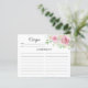 Carte de recette de Fête des mariées de Roses Roses Roses Roses Roses Aquarelles Élégantes. Éléments correspondants disponibles.