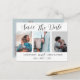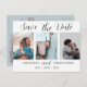 Cette élégante carte d'annonce de sauvegarde de date est parfaite pour mettre vos plans de mariage en mouvement. Elle comporte 3 modèles de photos avec un style d'écriture manuscrit tendance, le tout sur un fond blanc. Au verso, il y a un espace pour plus d'informations sur un fond sarcelle pâle. Très facile à éditer avec vos propres informations et photographies.