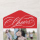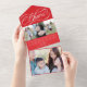 Ce carte photo de vacances moderne dispose d'une palette de couleurs rouge et blanc classique avec un élégant script de bienvenue, une horizontale et trois petites photos verticales. Sur le rabat extérieur de la carte se trouve votre adresse de retour. La photo peut être arrachée et gardée comme un gardien. Comme vous pouvez le voir, il est nécessaire de commander des enveloppes - simplement plier la carte et fixer les côtés avec les autocollants inclus. Adresses et postage sur le devant.