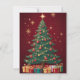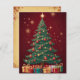 Cette élégante carte de voeux de Noël est ornée d'un arbre de Noël doré superbement conçu, dressé contre un arrière - plan rouge foncé. L'arbre est orné de délicats ornements dorés et surmonté d'une étoile brillante. Le design complexe comprend des lignes dorées chatoyantes et des étincelles, créant une atmosphère festive et luxueuse. Cette carte est parfaite pour envoyer des voeux de vacances à des amis et à la famille, capturant l'essence de Noël avec son look sophistiqué et festif. Le dos de la carte poursuit le thème festif avec un design de style vintage. Il a une texture de papier vieilli. Le centre est vide, offrant un espace suffisant pour écrire un message personnel, ajoutant une touche de nostalgie et de charme.